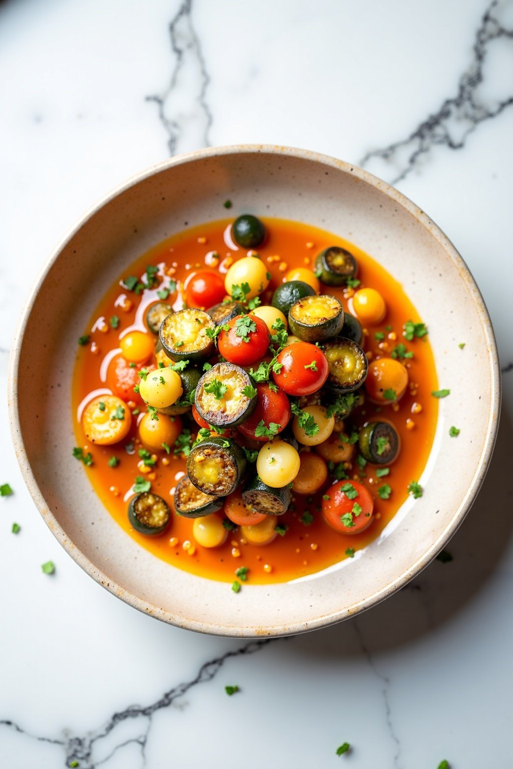 Grilled vegetable paella with saffron and citrus is a delightful twist on the traditional Spanish dish, bringing together the rich, earthy flavors of grilled vegetables with the fragrant and exotic notes of saffron and citrus. This dish is perfect for those who love a vibrant and colorful meal that is both satisfying and healthy. The grilling process adds a smoky depth to the vegetables, while the saffron infuses the rice with a golden hue and a subtle, aromatic flavor. The addition of citrus brightens the dish, balancing the richness of the saffron and the smokiness of the grilled vegetables.